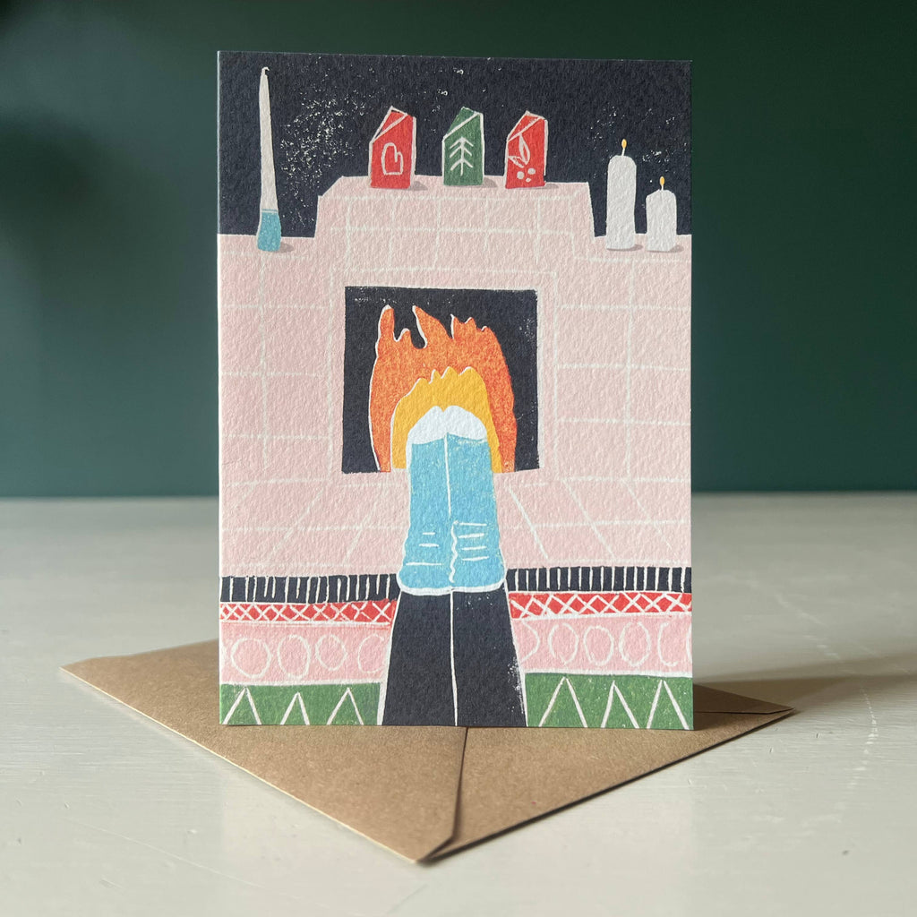 Feet by the Fire Christmas Card