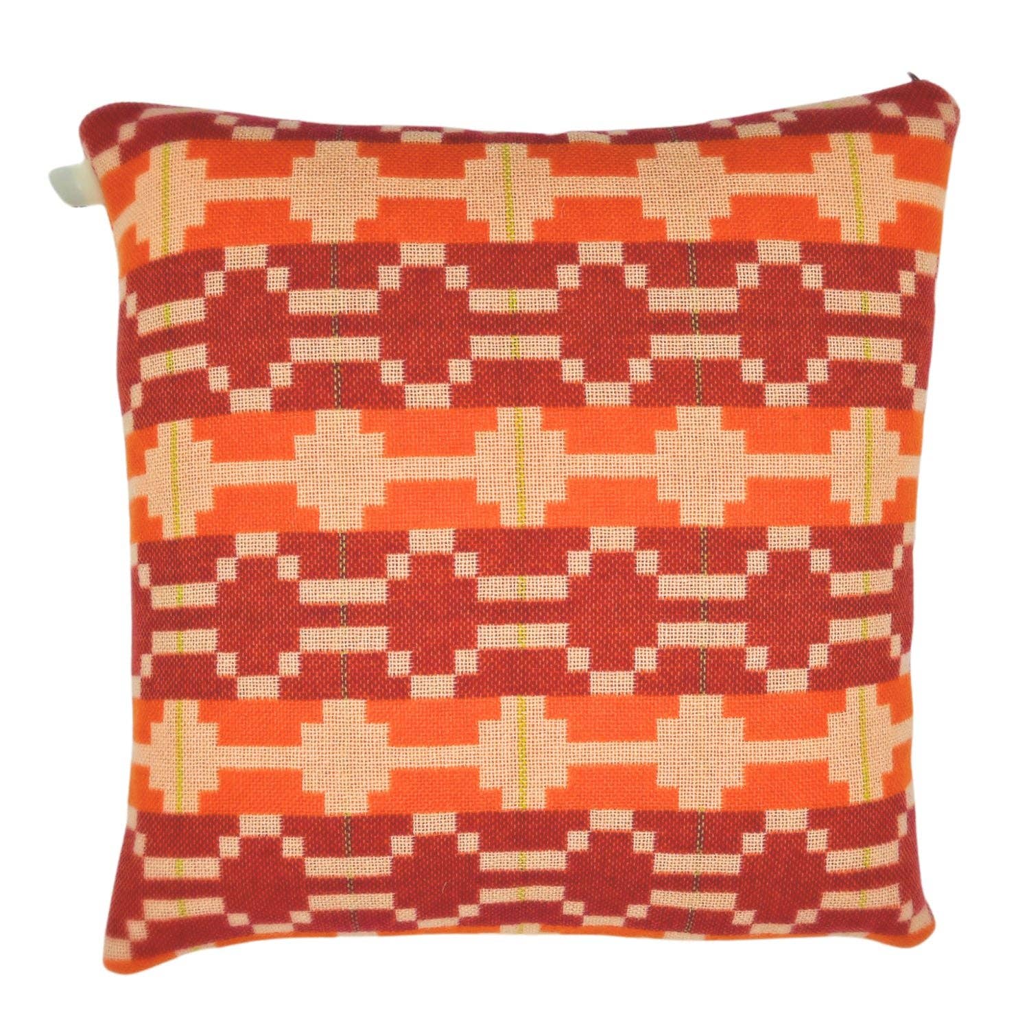 The warmth and breathability of wool coupled with a vibrant reversible design makes this pattern a striking addition to any room. Traditional welsh blankets and bedspreads are always reversible and the cushion covers have been constructed so that you get to enjoy both sides of the cloth.