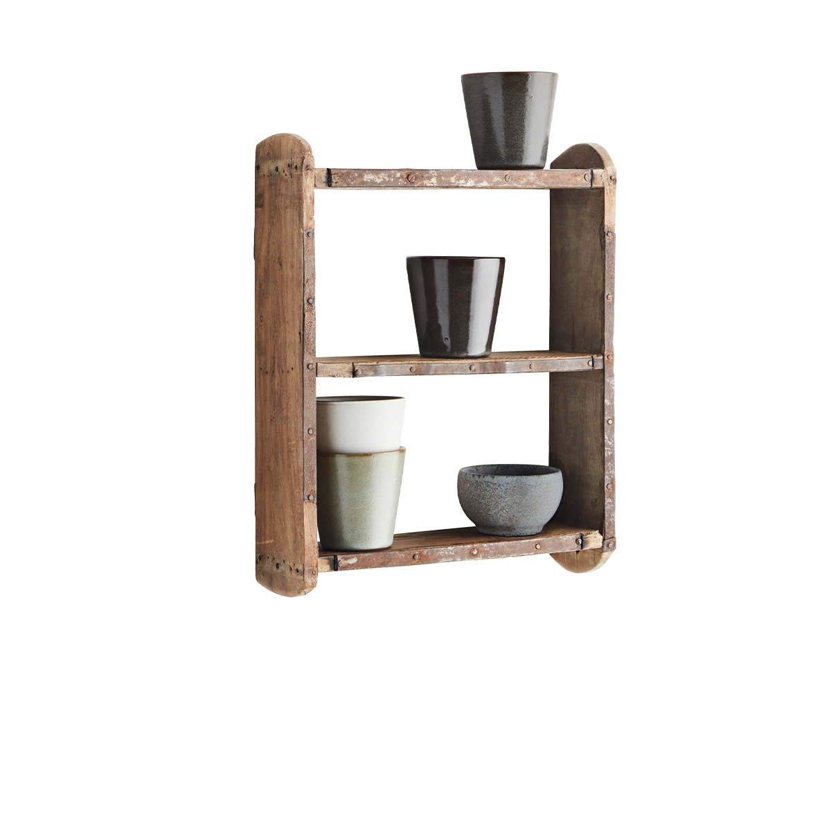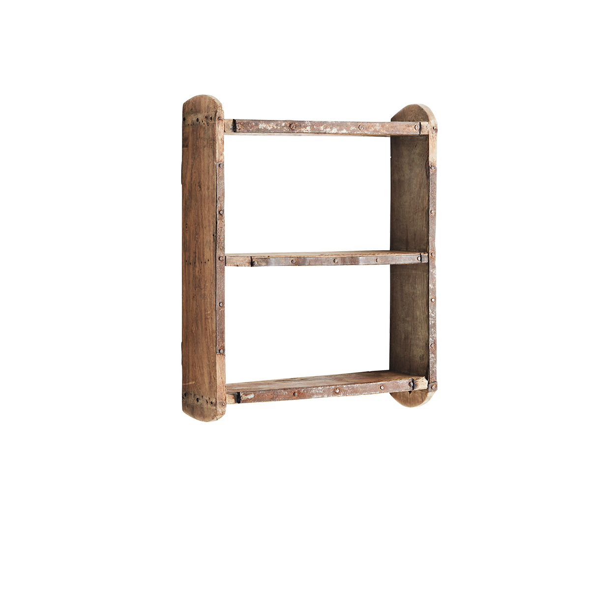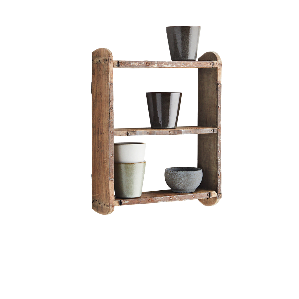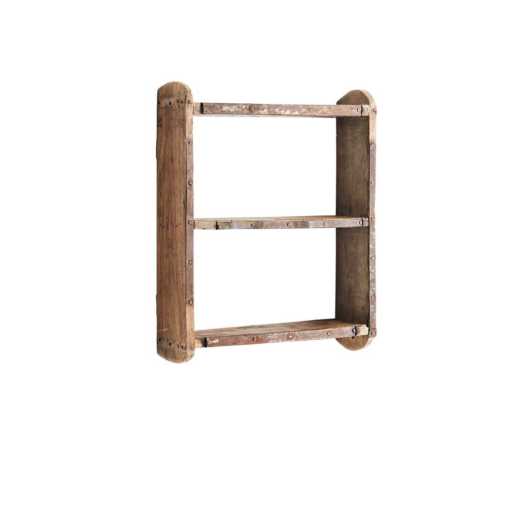 Original reclaimed wooden Indian brick moulds, recycled and transformed into mini shelving. Brick moulds were formerly used by craftsman to make the bricks to build a house for a family. We are happy to extend the product's life span by giving it a new function in your home! there are fixings to the back so it can be wall mounted either way.
